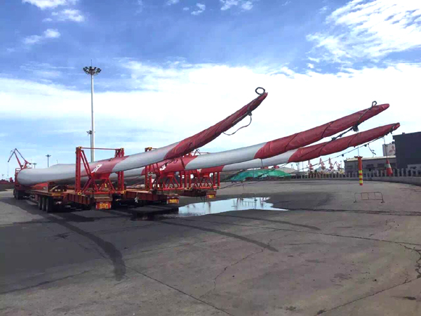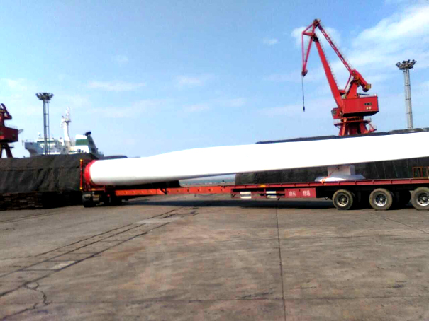 由于船舶在上一港壓港嚴(yán)重沒有及時到達(dá)連云港,造成送貨車輛早已到達(dá)港口等待裝船,此次出口葉片長度為49.8米,屬于長貨物,只能車船對接,不能辦理港口落場,考慮到貨物在碼頭外面等船容易發(fā)生貨損,我司在碼頭場地緊張的情況下,和港口說明情況,特批我司車輛進(jìn)入焦炭堆場等待裝船。
