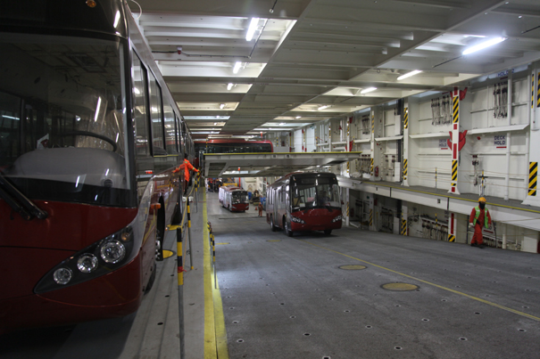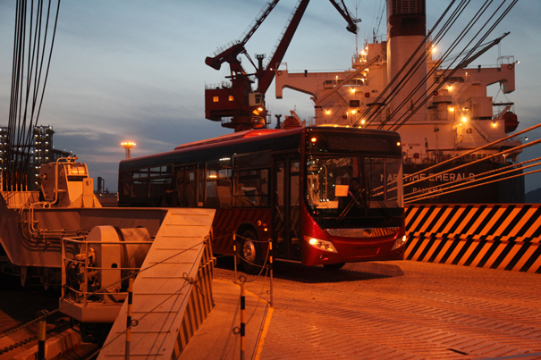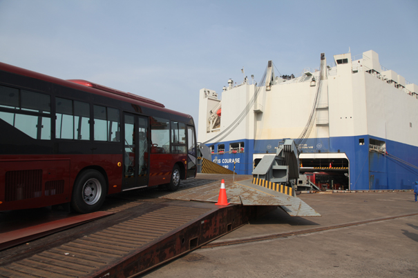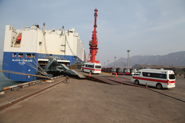 此次是連云港港口歷史以來最大的一批客車出運。361臺車輛在28日14點開始裝船,于28日21點裝船結(jié)束,歷時7個小時。我公司寧遠(yuǎn)物流在此批客車出口中進(jìn)行了專業(yè)服務(wù),在港口進(jìn)行24小時值班接車,認(rèn)真核對車輛與單證信息是否一致,仔細(xì)檢查車輛外觀是否完好,并安排專業(yè)單證進(jìn)行通關(guān),為車輛安全出口到國外做足了充分的保障工作。