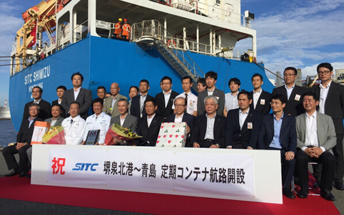 7月24日,海豐集運的SITC SHIMIZU(海豐清水)號首航駛?cè)雸备?,青島-堺泉北港航線首航,同時在堺泉北港舉行了首航儀式,參加首航儀式的有大阪府港灣局,泉大津市總合政策部港灣振興擔(dān)當(dāng),大阪府港灣協(xié)會,客戶代表等。大阪府港灣局次長渡部先生和海豐國際CEO楊現(xiàn)祥先生在首航儀式上發(fā)表了祝賀演講。