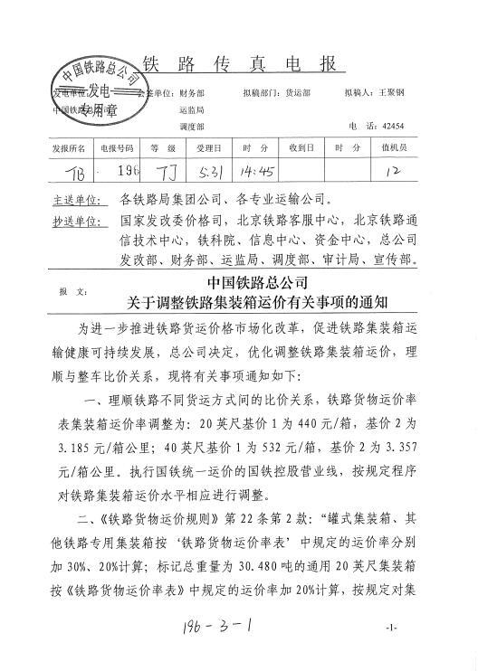 為進(jìn)一步推進(jìn)鐵路貨運價格市場化改革,促進(jìn)鐵路集裝箱運輸健康可持續(xù)發(fā)展,鐵路公司決定優(yōu)化調(diào)整鐵路集裝箱運價,貨代的小伙伴們快來看看有哪些改變呢?